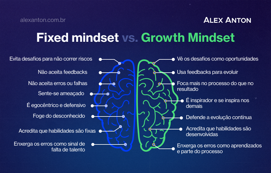 Então, ele se opõe ao de mentalidade fixa ou fixed mindset, defendida por quem acredita que algum talento é inato a alguém.